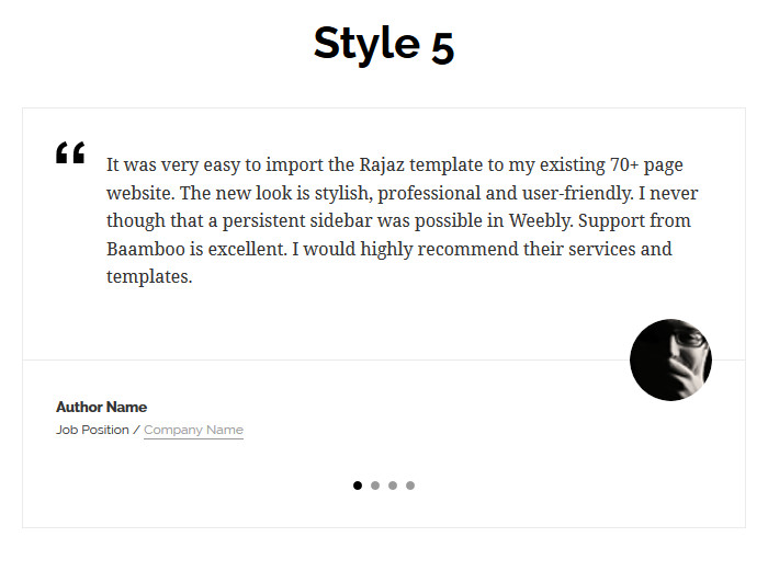 Almost the same design but with Weebly Testimonial Slider, you can display multiple testimonials in a small area of your site.