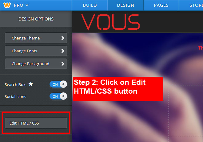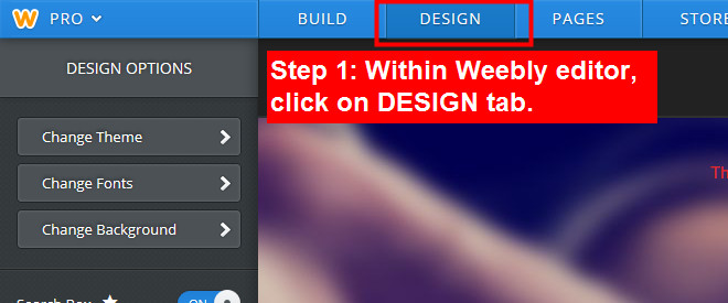 Step 1: Within Weebly editor, click on DESIGN tab.